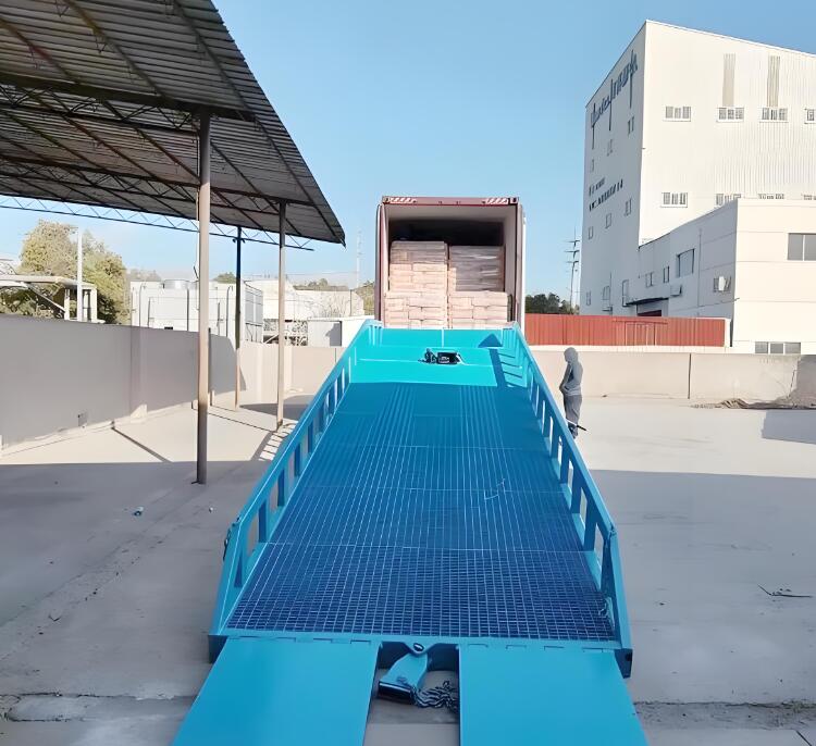 移动式登车桥是与叉车配合使用的货物装卸辅助设备